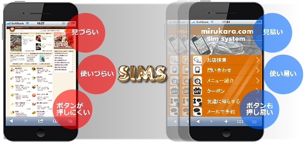 SIMSでは、閲覧者にとって『見易い・使い易い』だけでなく、直接集客に繋がるような機能を搭載しております。 |